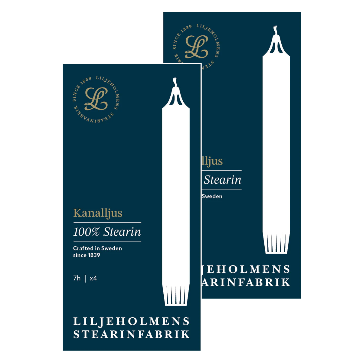 Receive two complimentary 4-count boxes of Liljeholmens Stearinfabrik Kanalljus Channel Candles with your purchase.