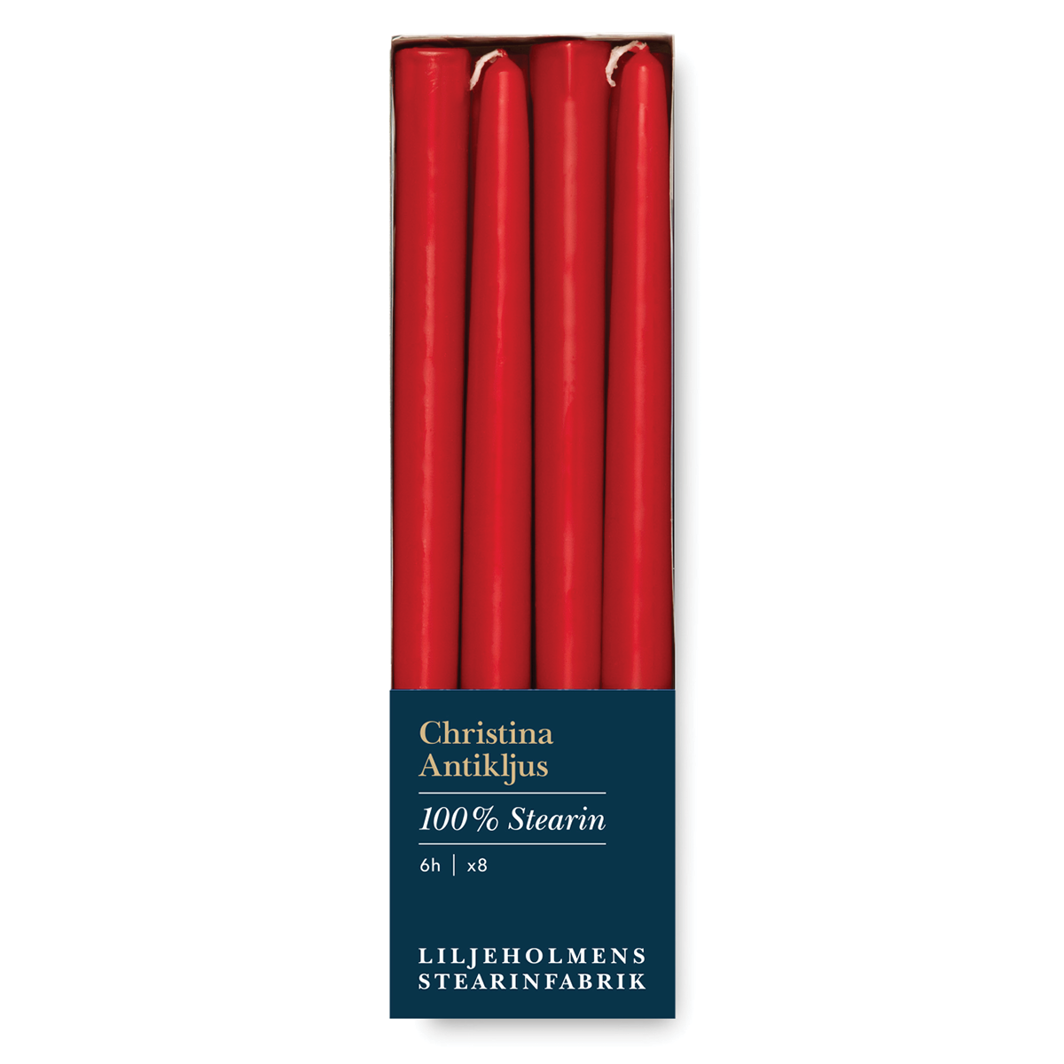 Swedish Christina Antique Taper Stearin Candles, 10" 8-Count - Six Color Variants - Made in Sweden