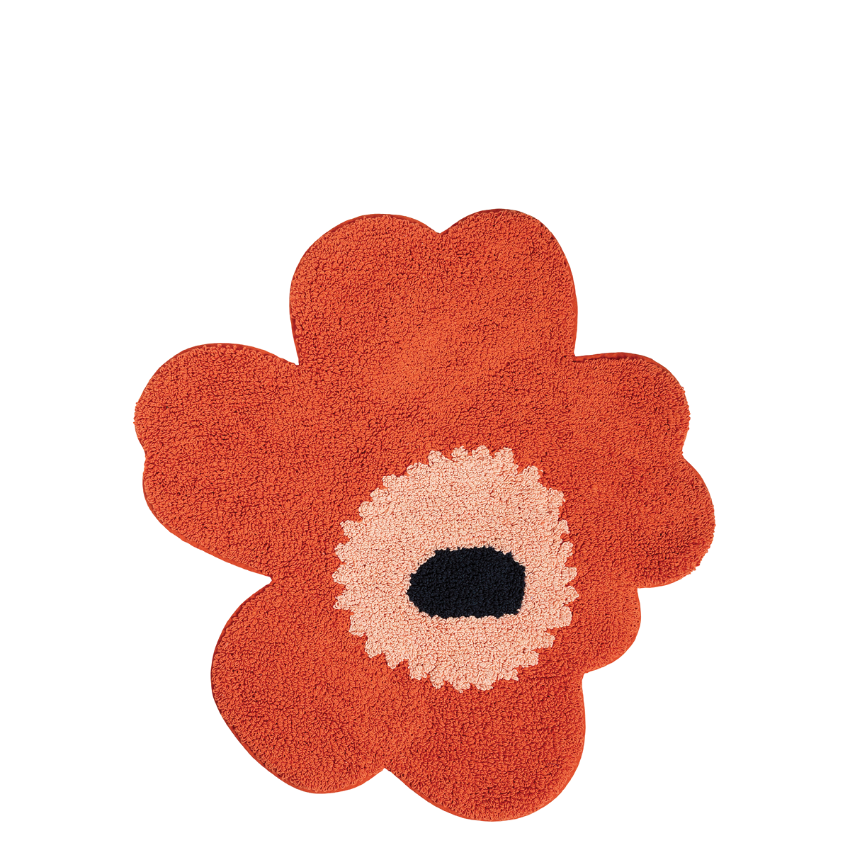 The Unikko flower shaped tufted bathmat is made of 100% organic cotton. The soft tufted surface and hand-cut shape give every bathmat a unique appearance, so small differences between products may appear. The bathmat has a non-slip backing.