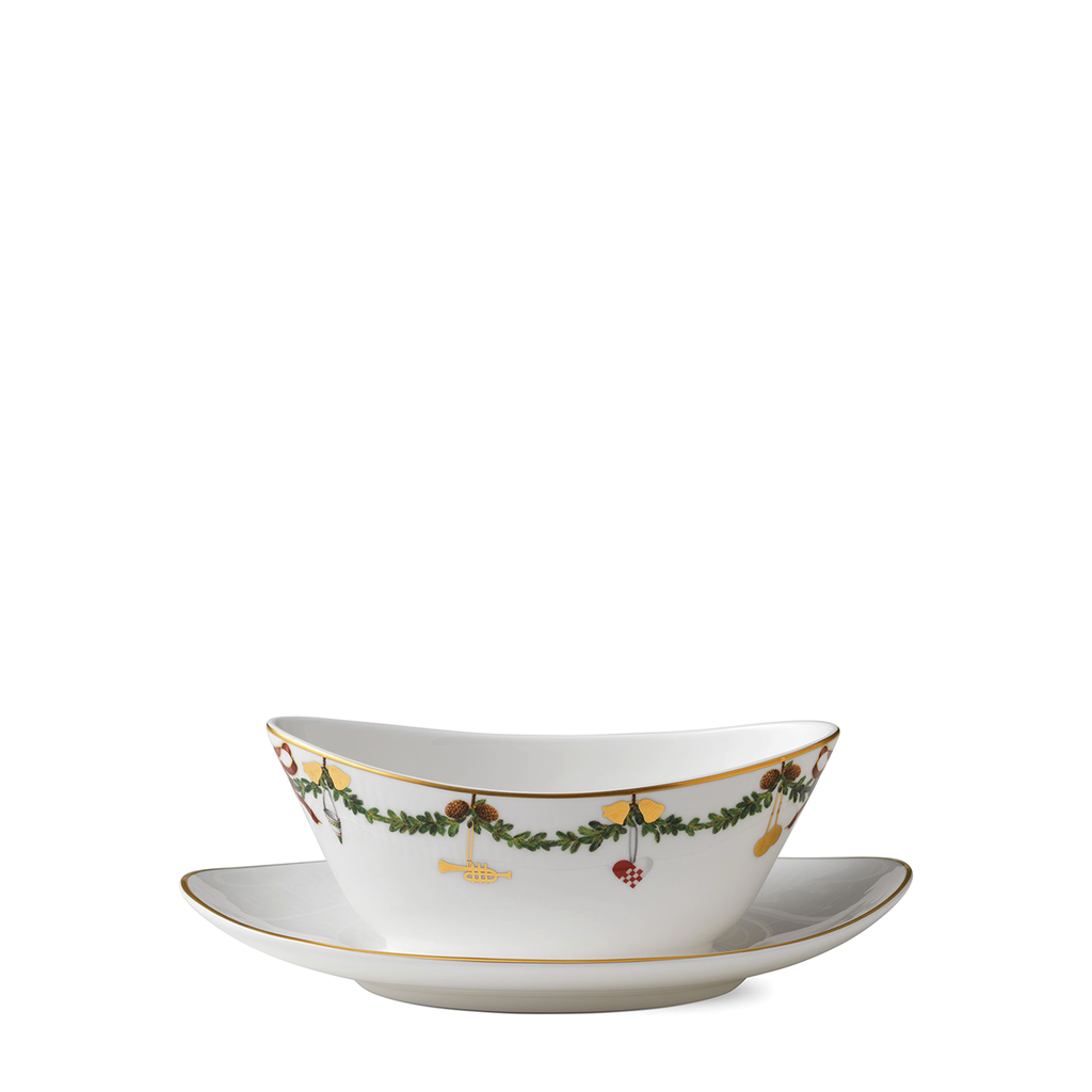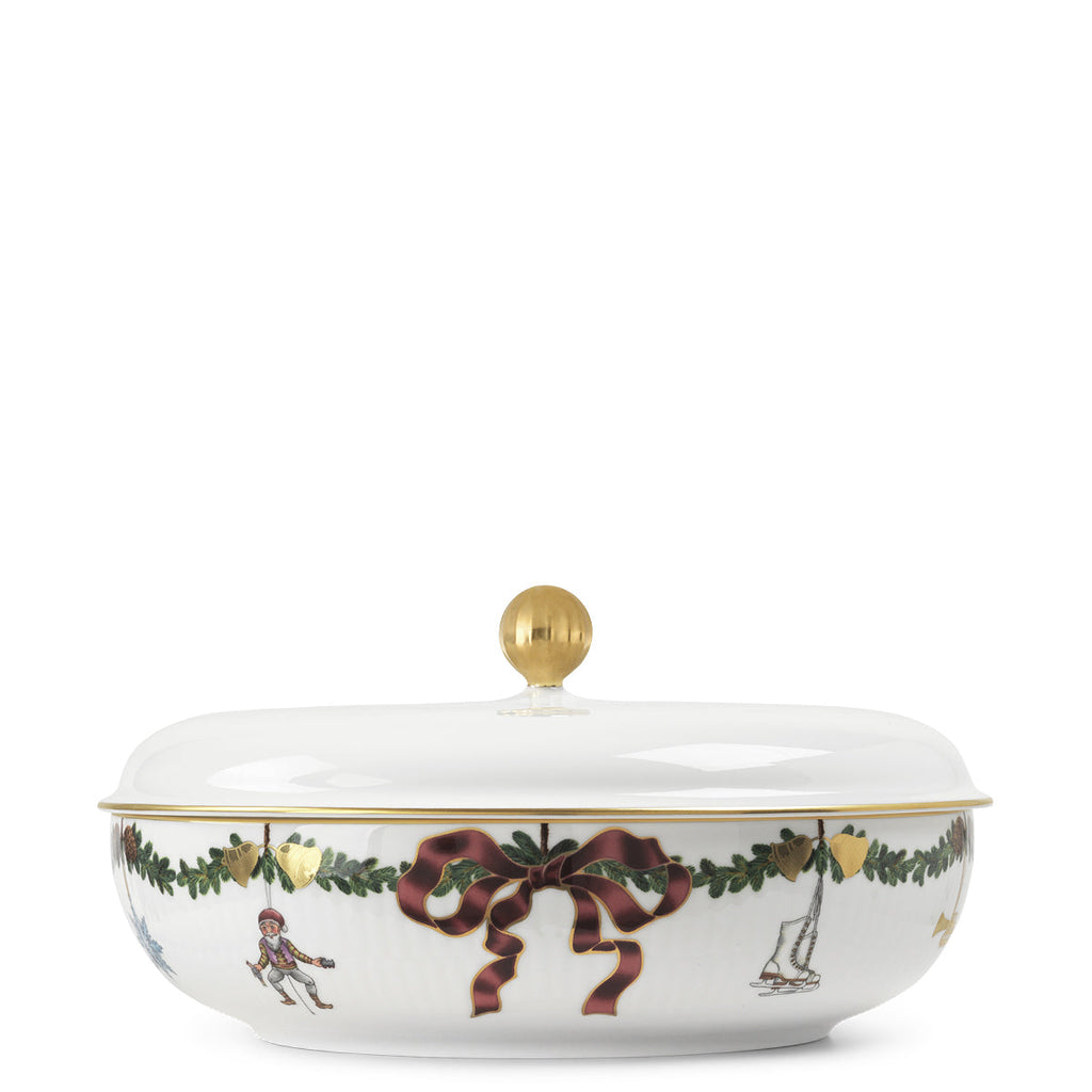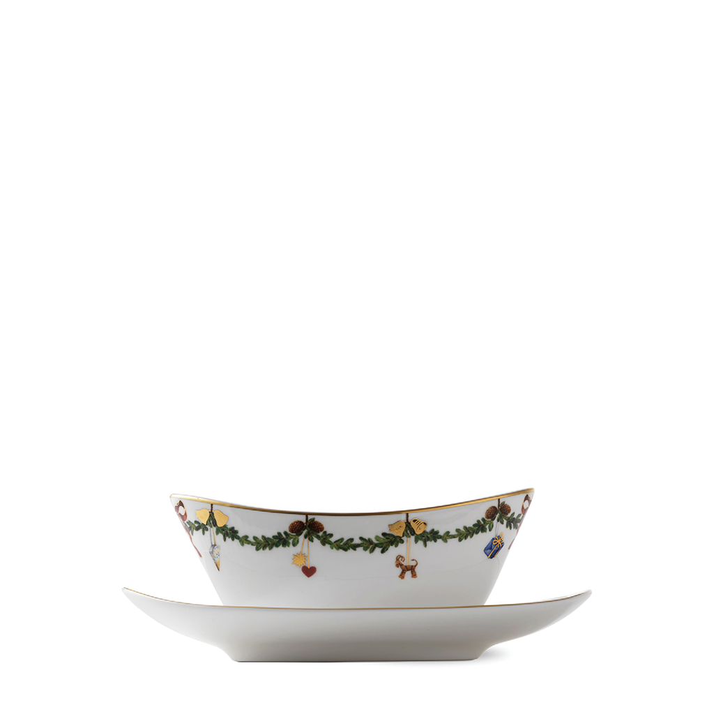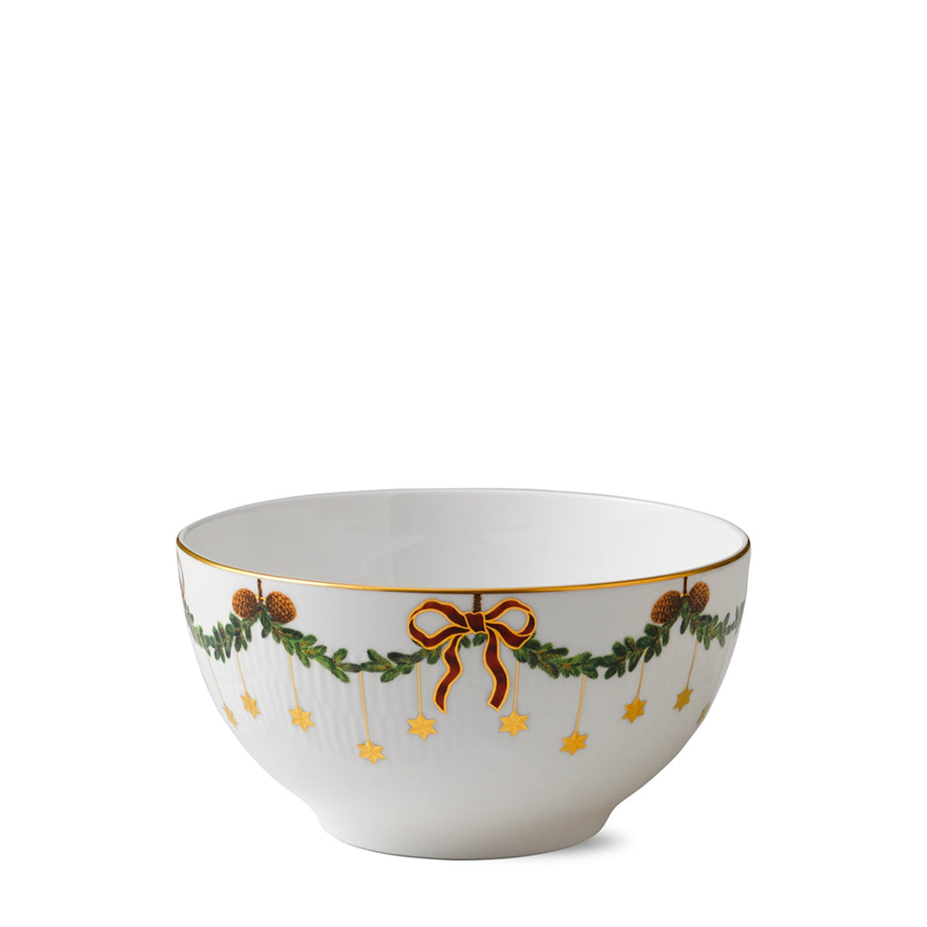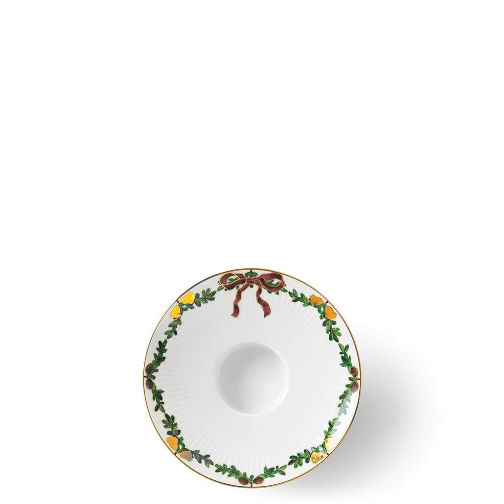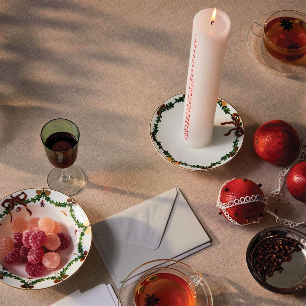 The joys of the holiday season are all here. Royal Copenhagen's Star Fluted Christmas service sees garlands of spruce wind their way around all plates, decorated with bows of satin, hearts, drums, angels—the staples of a traditional, utterly cosy Danish Christmas. No two bows are ever tied the same. On the tree, the presents or on any of these unique pieces.