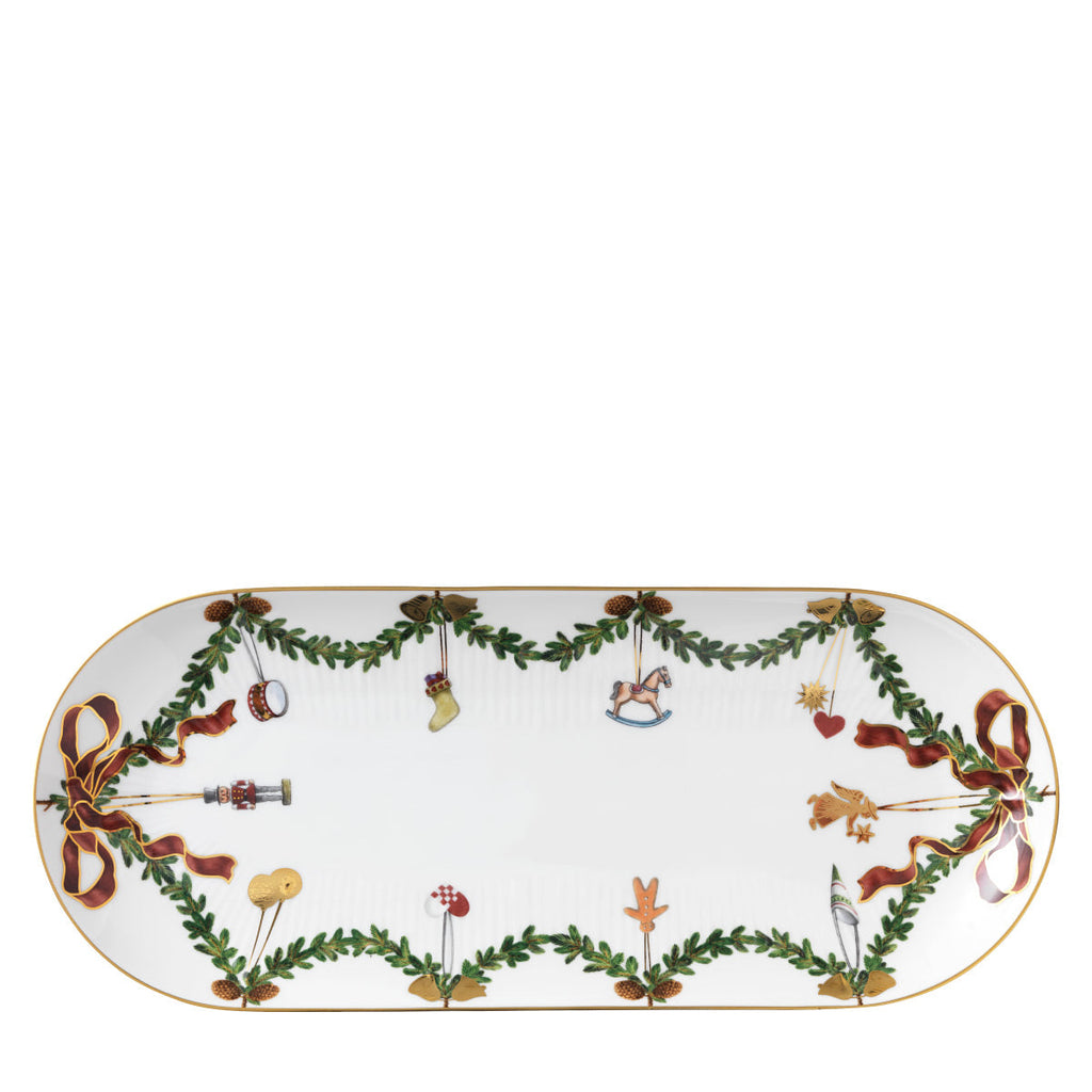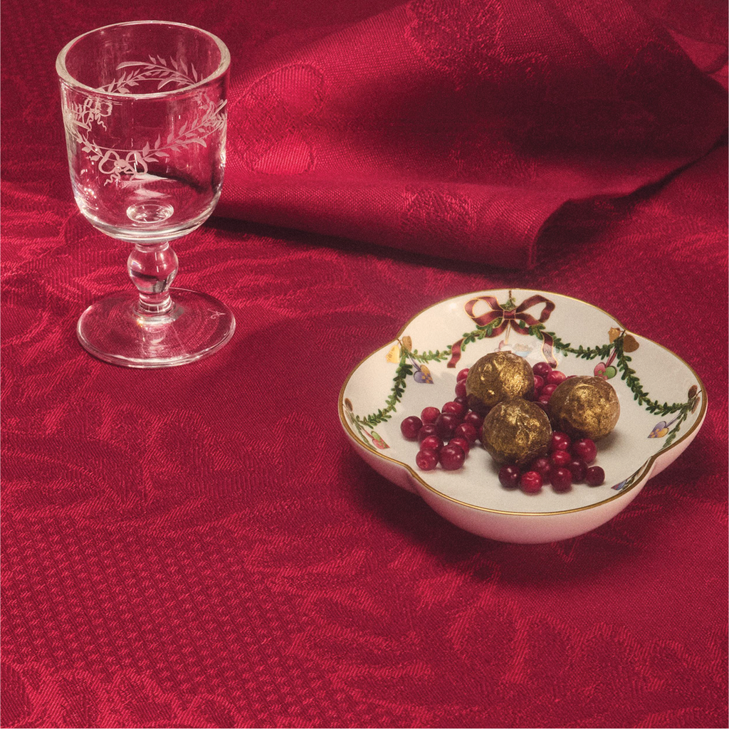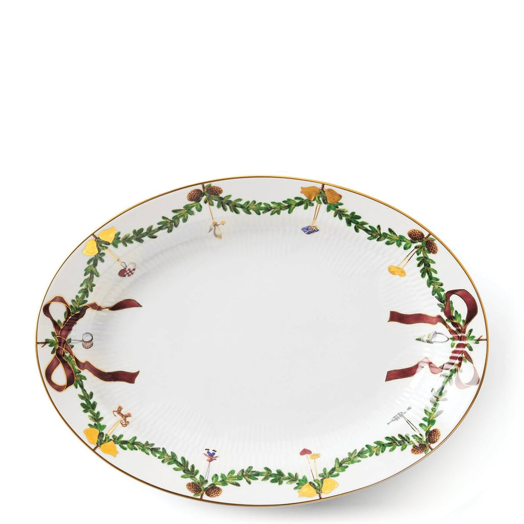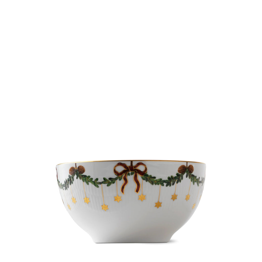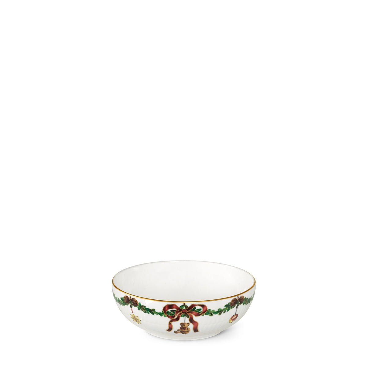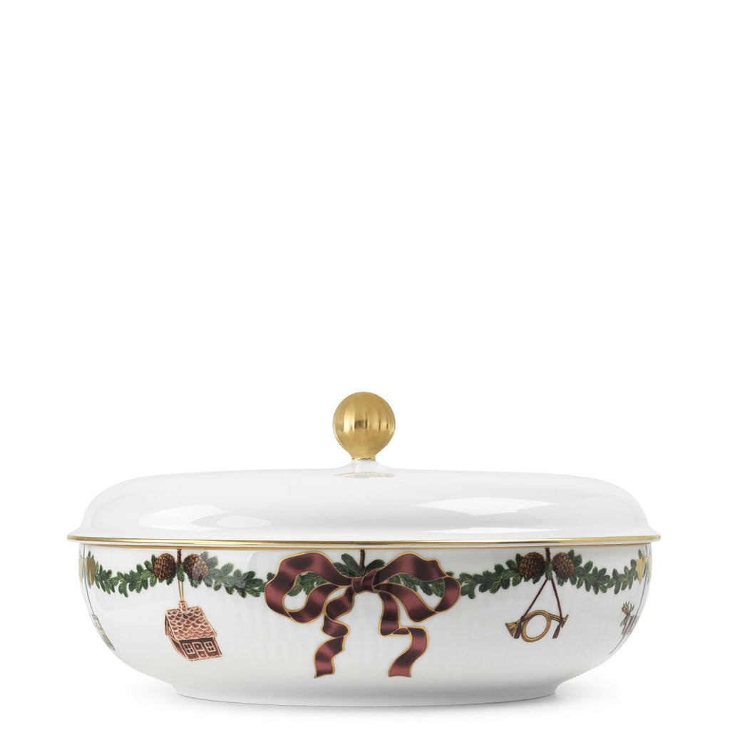 The joys of the holiday season are all here. Royal Copenhagen's Star Fluted Christmas service sees garlands of spruce wind their way around all plates, decorated with bows of satin, hearts, drums, angels—the staples of a traditional, utterly cosy Danish Christmas. No two bows are ever tied the same. On the tree, the presents or on any of these unique pieces.