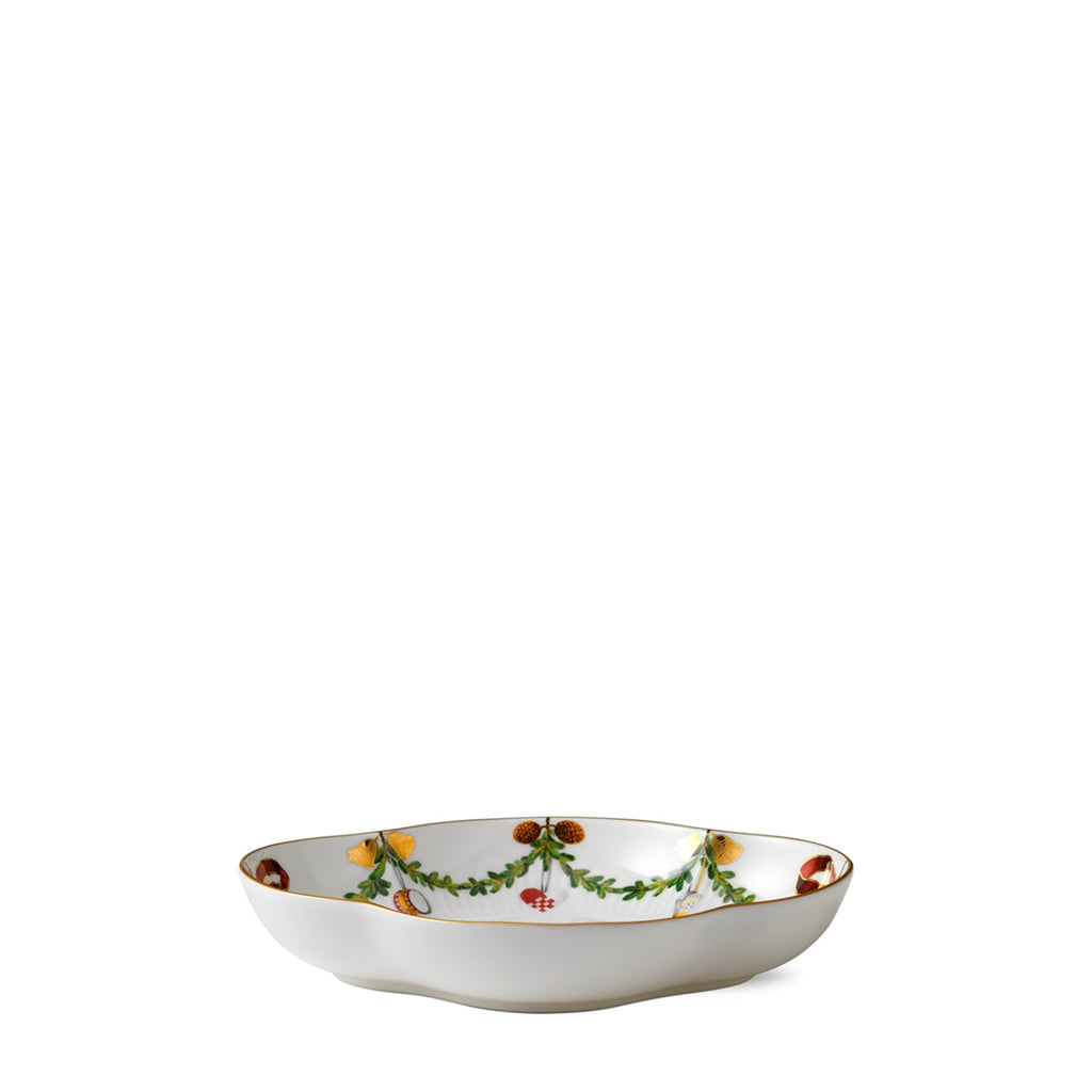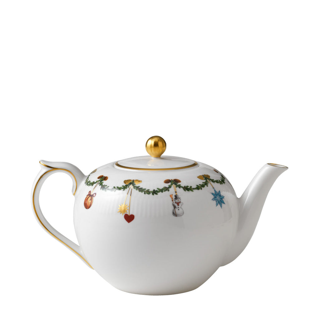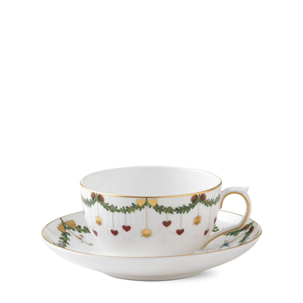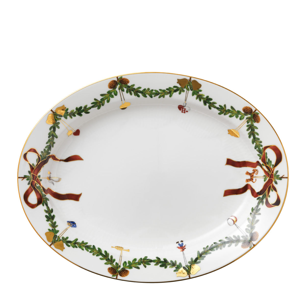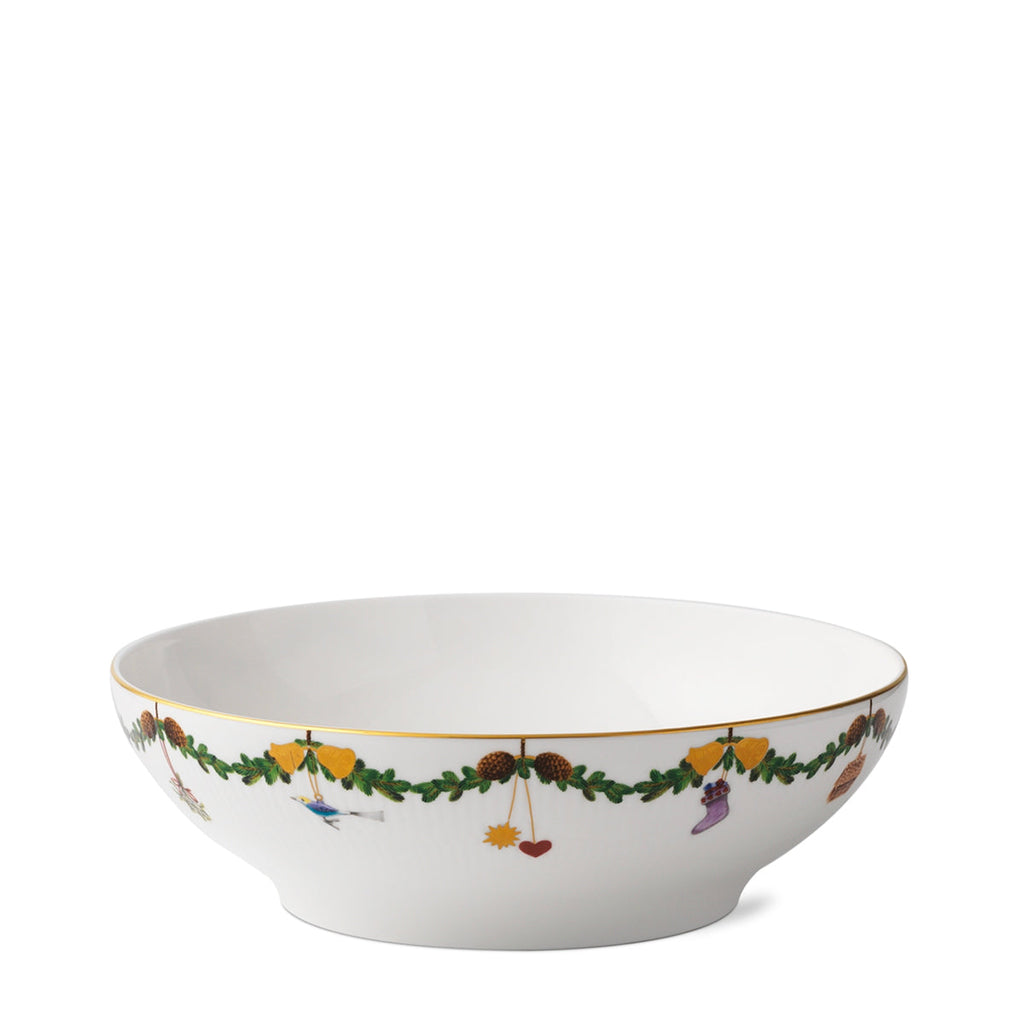 The joys of the holiday season are all here. Royal Copenhagen's Star Fluted Christmas service sees garlands of spruce wind their way around all plates, decorated with bows of satin, hearts, drums, angels—the staples of a traditional, utterly cosy Danish Christmas. No two bows are ever tied the same. On the tree, the presents or on any of these unique pieces.