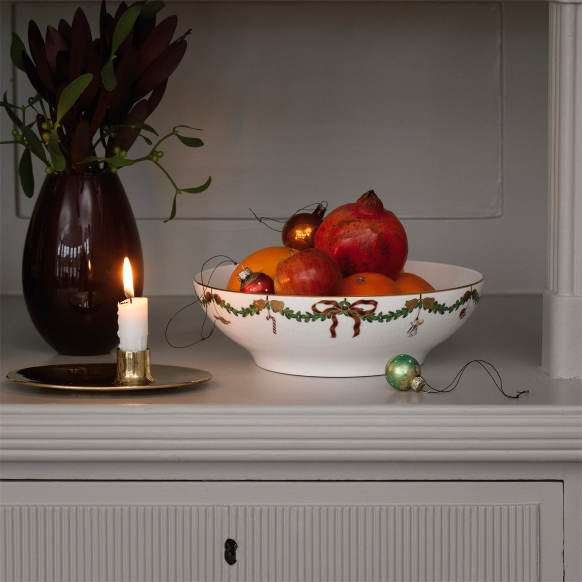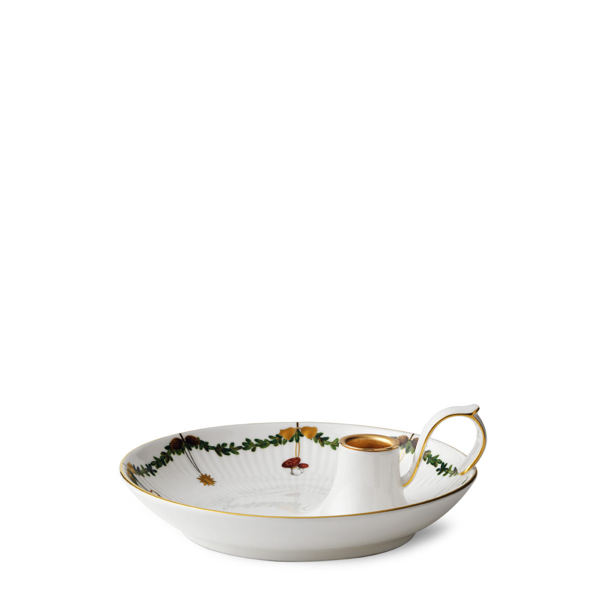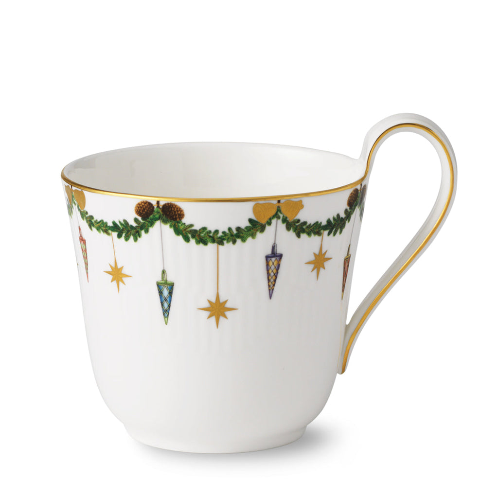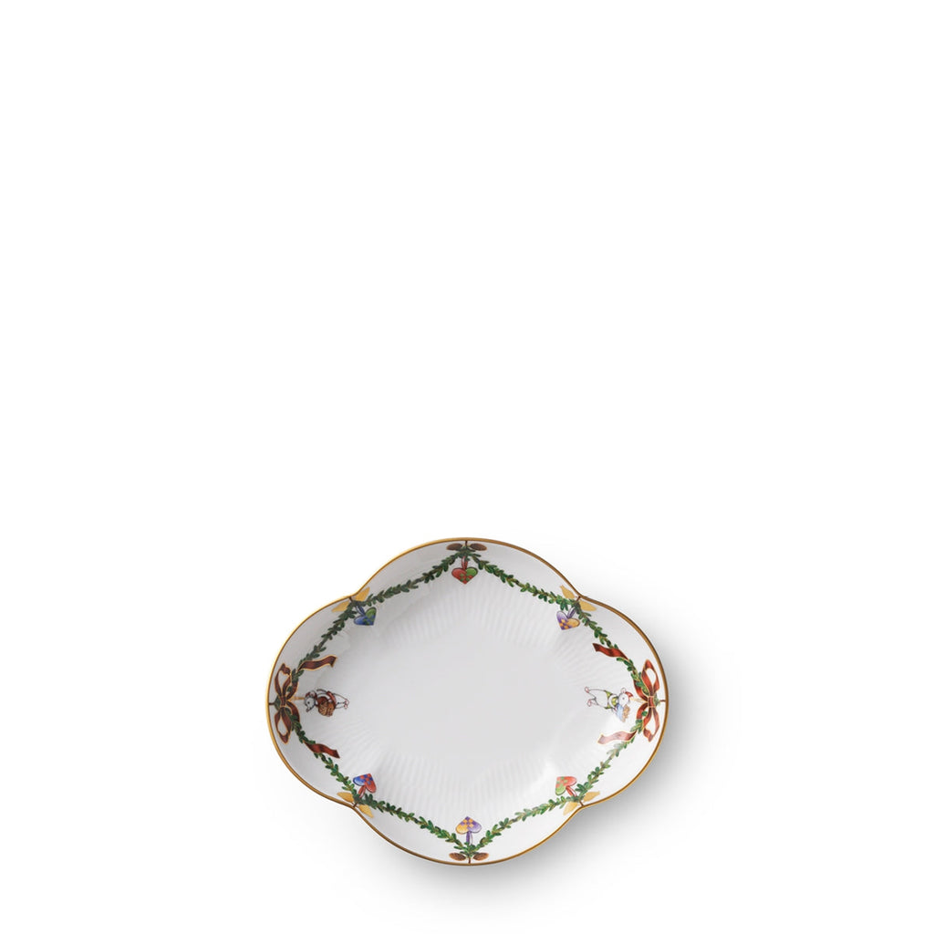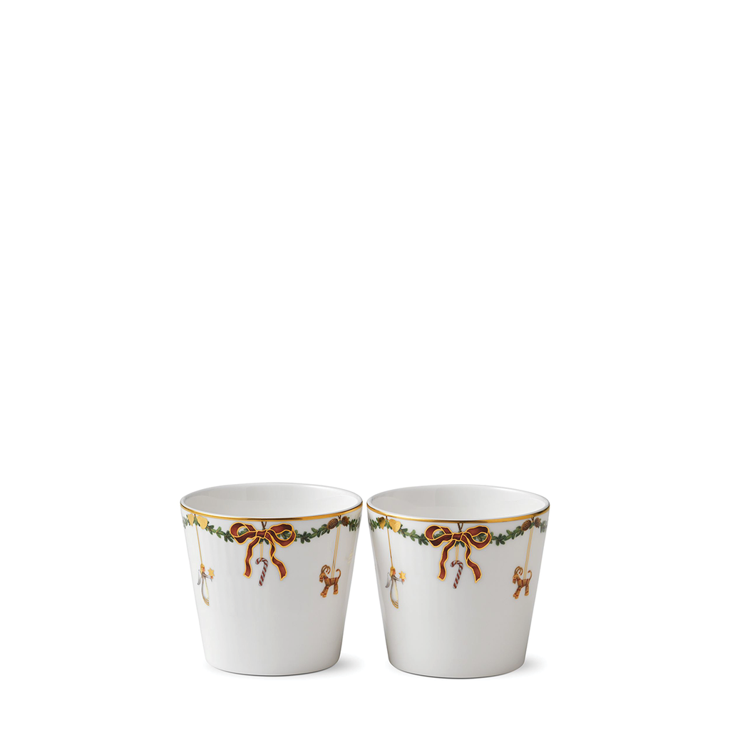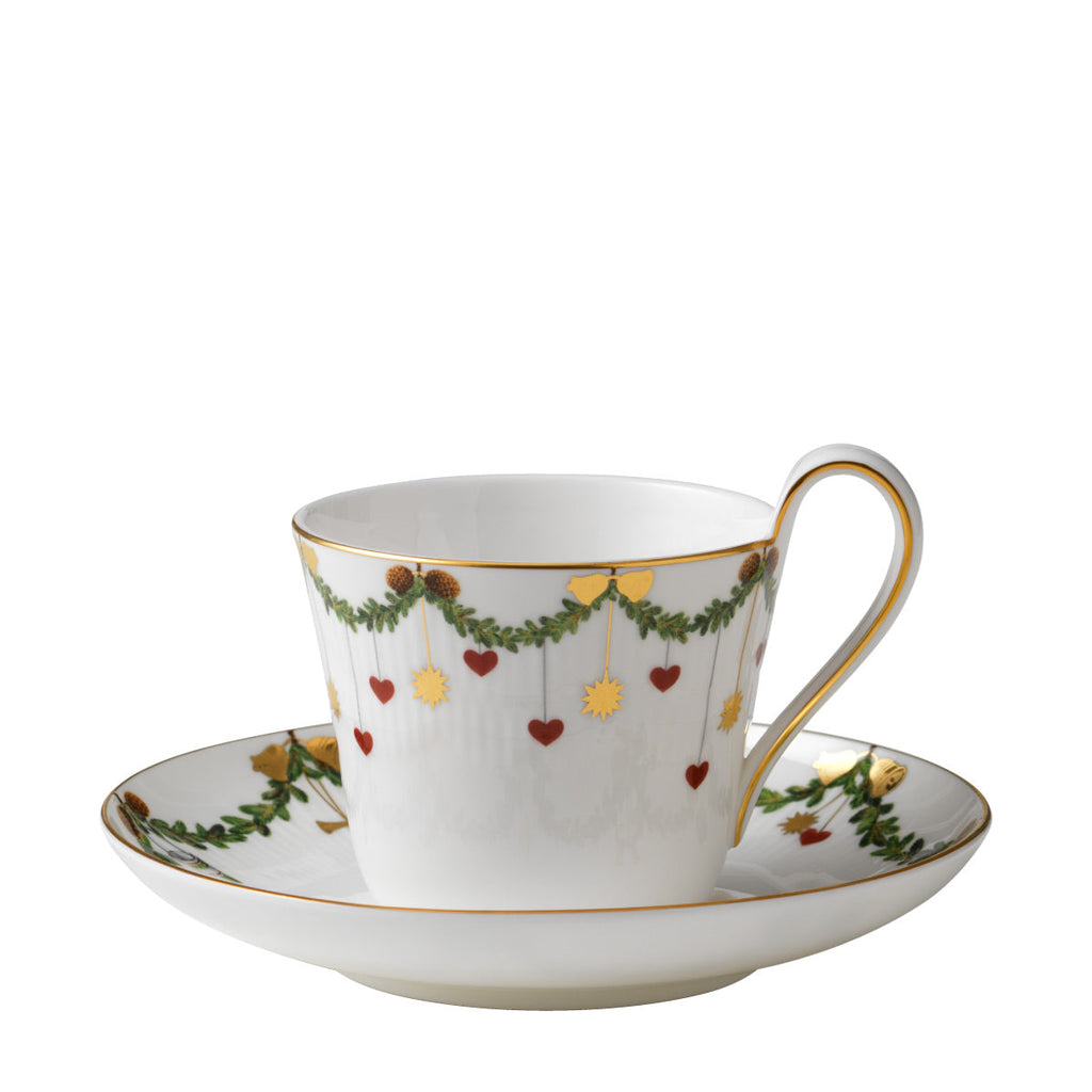 The joys of the holiday season are all here. Royal Copenhagen's Star Fluted Christmas service sees garlands of spruce wind their way around all plates, decorated with bows of satin, hearts, drums, angels—the staples of a traditional, utterly cosy Danish Christmas. No two bows are ever tied the same. On the tree, the presents or on any of these unique pieces.