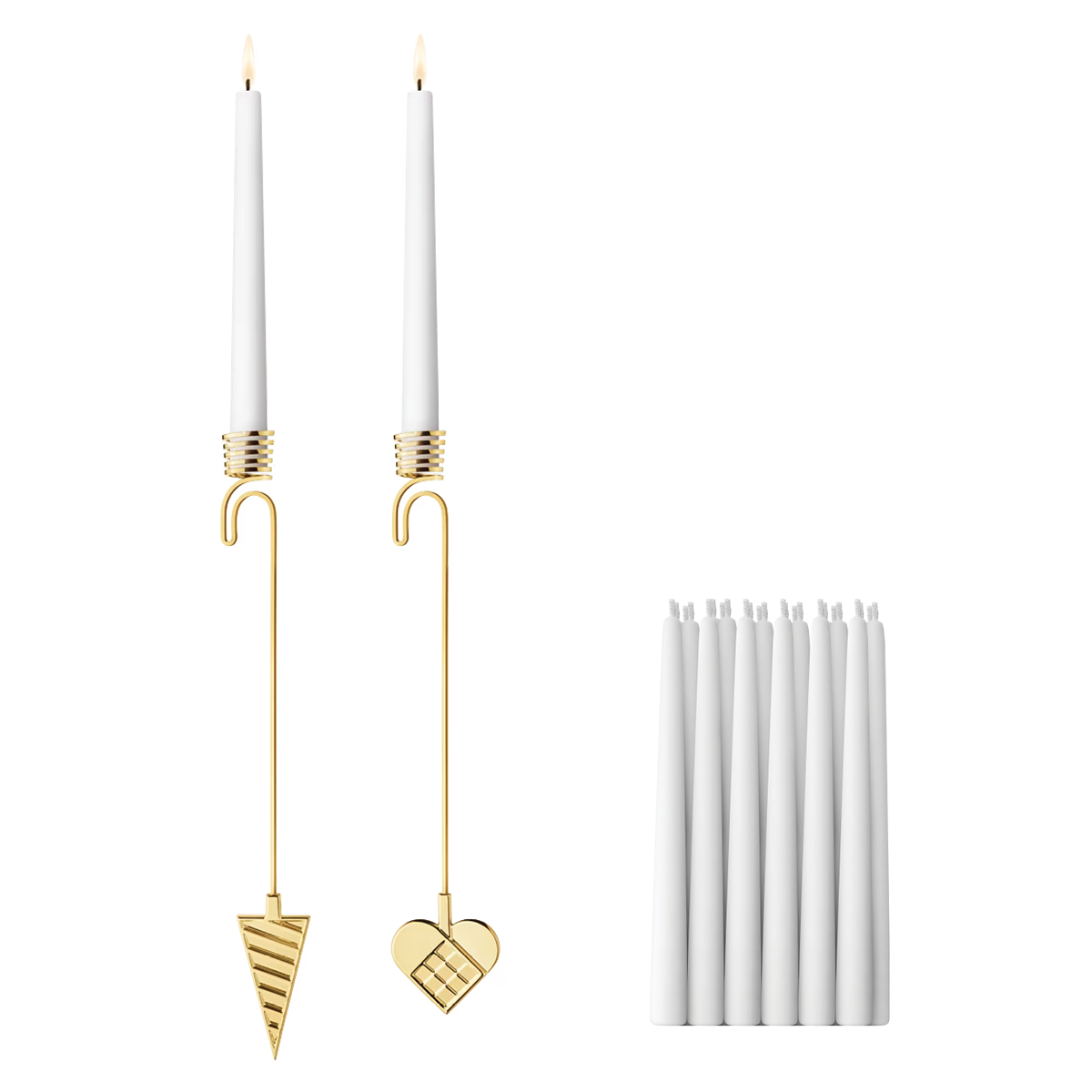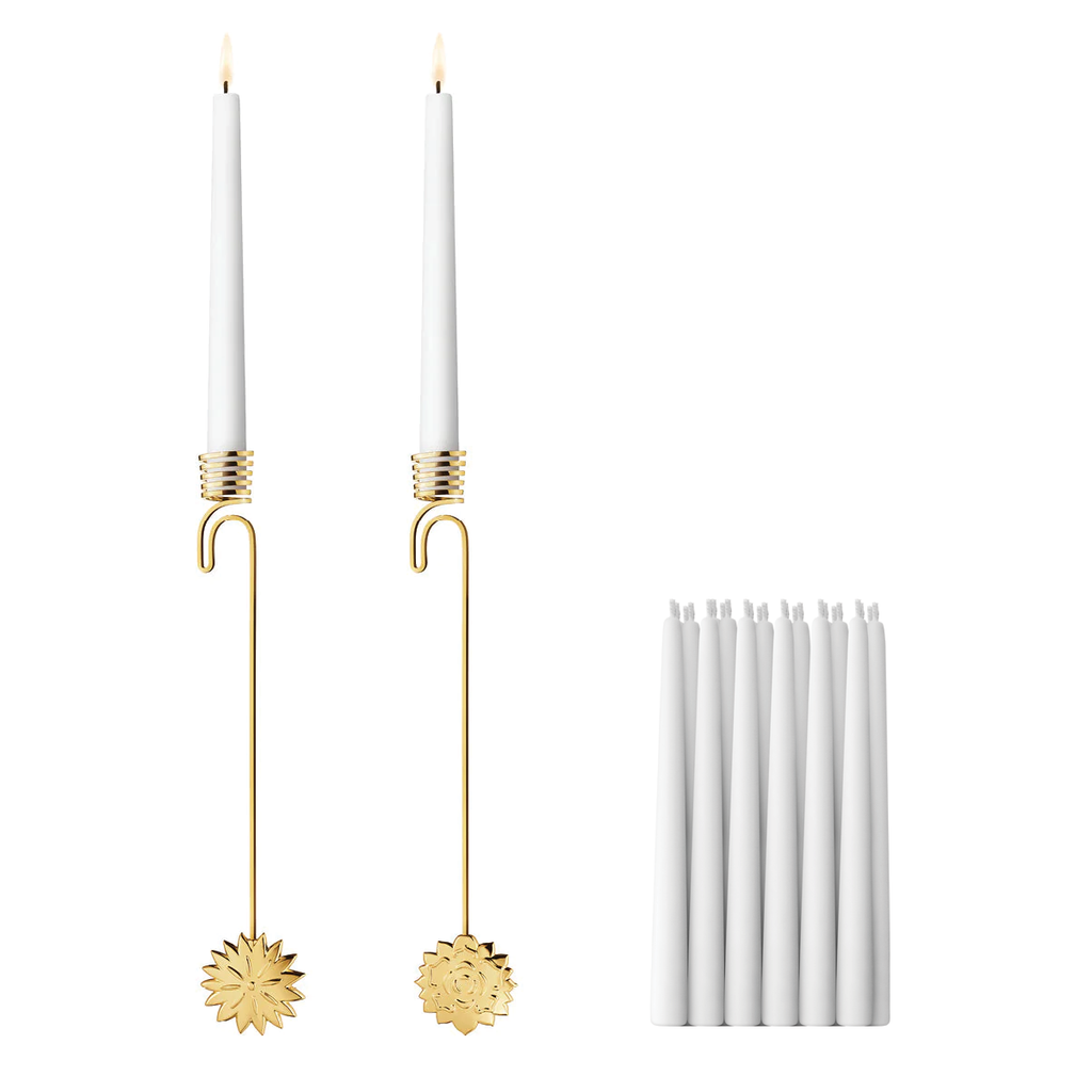 Your candleholder set comes with two complimentary 24-count boxes of Georg Jensen hand-dipped, self-extinguishing paraffin candles, made in Denmark.