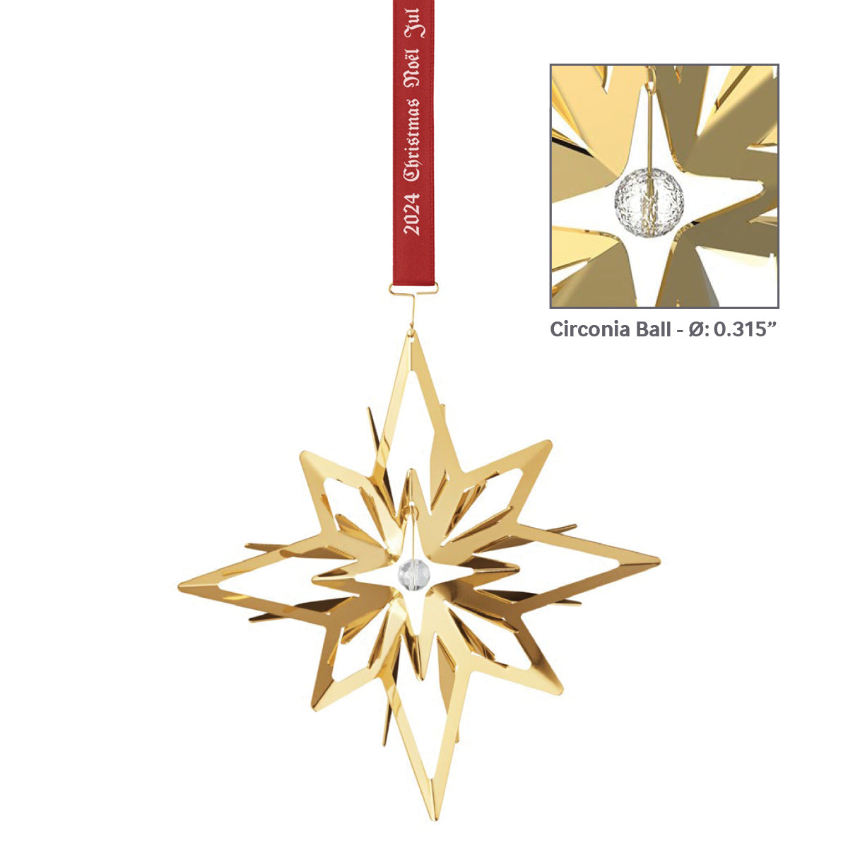• Star: Ornament: W: 4.6" x H: 4.6"; Center Circonia Ball: Ø: 0.32"