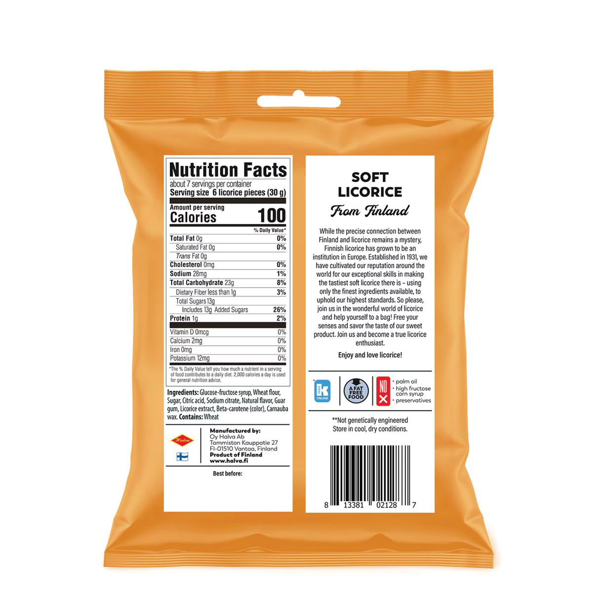 Finland is known for licorice, and Halva is known as one of Finland's best licorice makers. Established in 1931, Halva creates this soft, fat-free mango licorice using only the finest ingredients available. This makes a great stocking stuffer for a fan of Finnish licorice, and an authentic treat for yourself too.